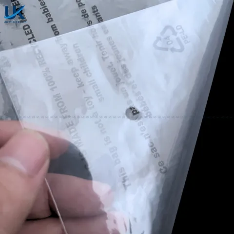 Túi PE dán miệng in 1 mặt 28x43x7cm hỗ trợ in ấn theo yêu cầu. Doanh nghiệp có thể in logo, thông tin hoặc hướng dẫn sử dụng. Giải pháp in 1 mặt giúp tiết kiệm chi phí sản xuất. Đồng thời vẫn đảm bảo tính nhận diện thương hiệu.